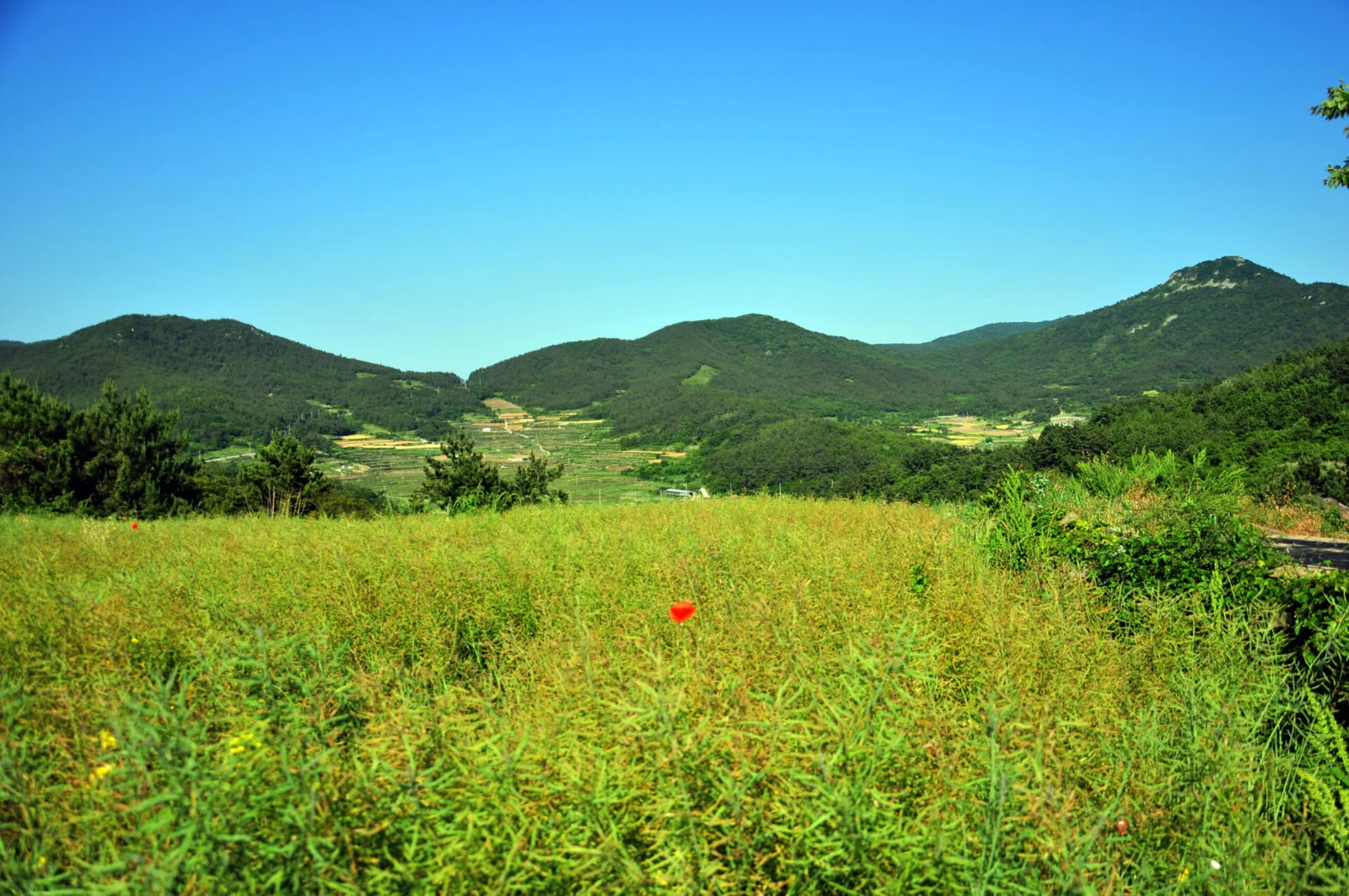 True to its name, literally “Green Mountain Island,” the place is awash in green, the whole landscape clothed in grass and trees. Following the dirt roads edged with fields where the film’s scenes were shot, I felt the movie return to me; the cadences of pansori seemed to walk beside me along the path. More than anything, a long coast-hugging hiking trail, rising and falling over the hills, was breathtaking. It remains one of the best places I’ve visited in Korea.